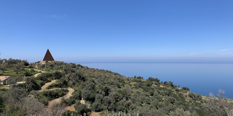 38º parallelo – Piramide (2010) — Мауро Стаччіолі (Мотта д’Аффермо) Піраміда, що позначає географічну лінію 38-го паралелю, закріплюючи зв’язок регіону з рештою світу.